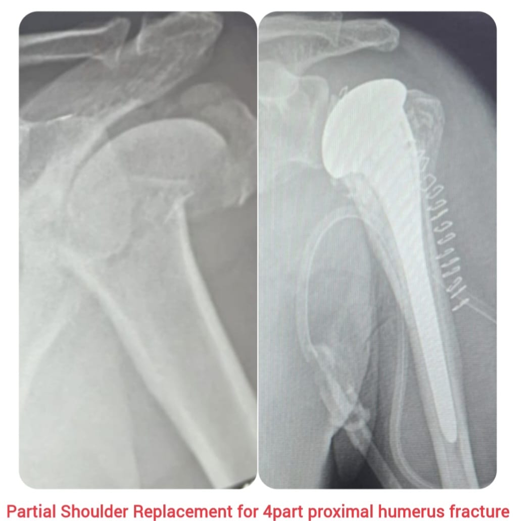 Partial shoulder replacement, also known as shoulder hemiarthroplasty, is a surgical procedure performed to relieve pain and restore function in patients with severe shoulder joint damage. In this procedure, only the damaged ball (humeral head) of the shoulder joint is replaced with a prosthetic implant, while the natural socket (glenoid) is preserved.